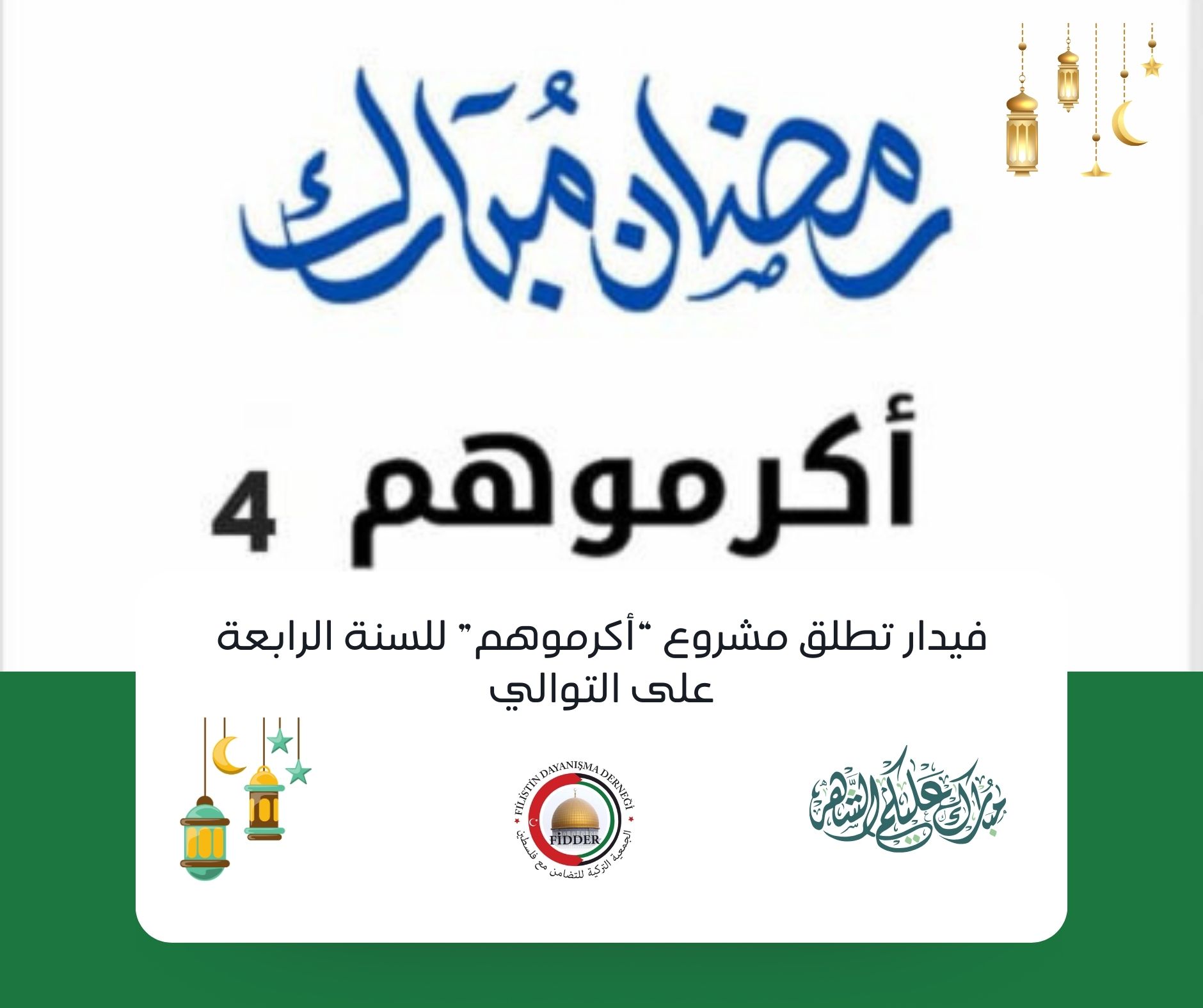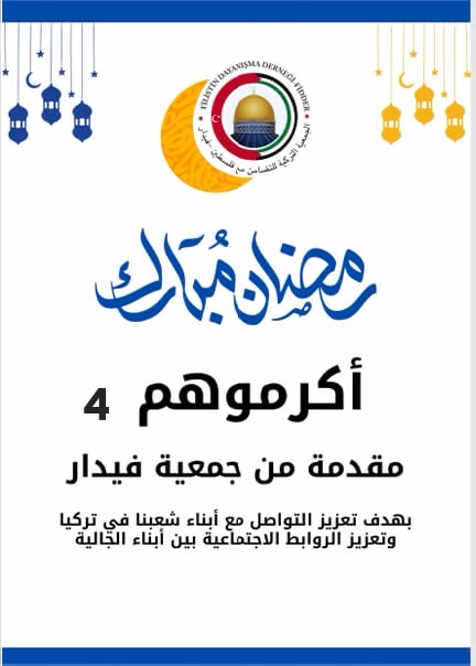 أطلقت جمعية فيدار مشروعها الإنساني “أكرموهم” للسنة الرابعة على التوالي، استمرارًا لرسالتها في خدمة أبناء شعبنا الفلسطيني في تركيا وتعزيز جسور التواصل معهم.