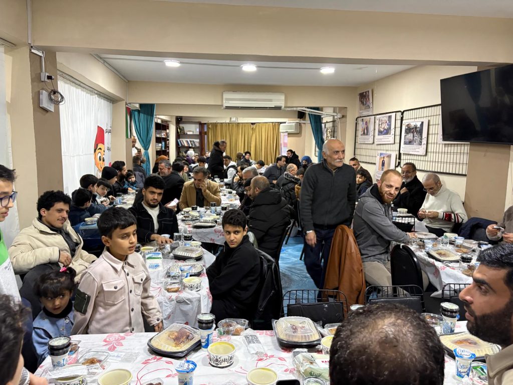 واستُهلّ برنامج الإفطار بكلمة ترحيبية ألقاها ممثل الجمعية، رحّب فيها بالحضور، مؤكداً حرص فيدار على تنظيم مثل هذه اللقاءات التي تجمع أبناء الجالية الفلسطينية وتعزز أواصر التواصل بينهم، خصوصاً في شهر رمضان المبارك.
