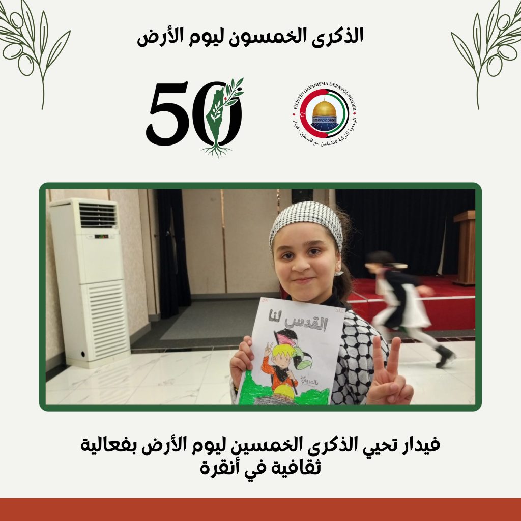 نظّمت جمعية فيدار فعالية ثقافية بمناسبة الذكرى الخمسين ليوم الأرض الفلسطيني،وذلك في العاصمة التركية أنقرة، بحضور عدد من أبناء الجالية الفلسطينية.