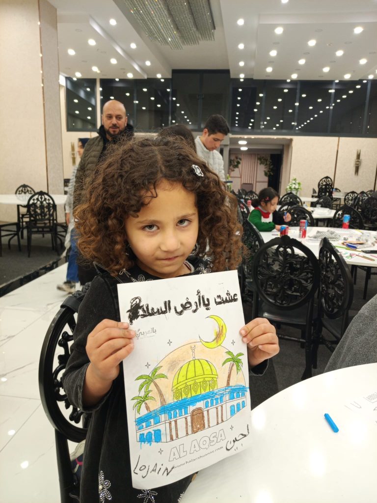 كما شملت الفعالية أنشطة رسم عبّر من خلالها الأطفال عن ارتباطهم بفلسطين، إلى جانبفقرات فنية متنوعة جسّدت روح الانتماء والتمسك بالحقوق الوطنية.